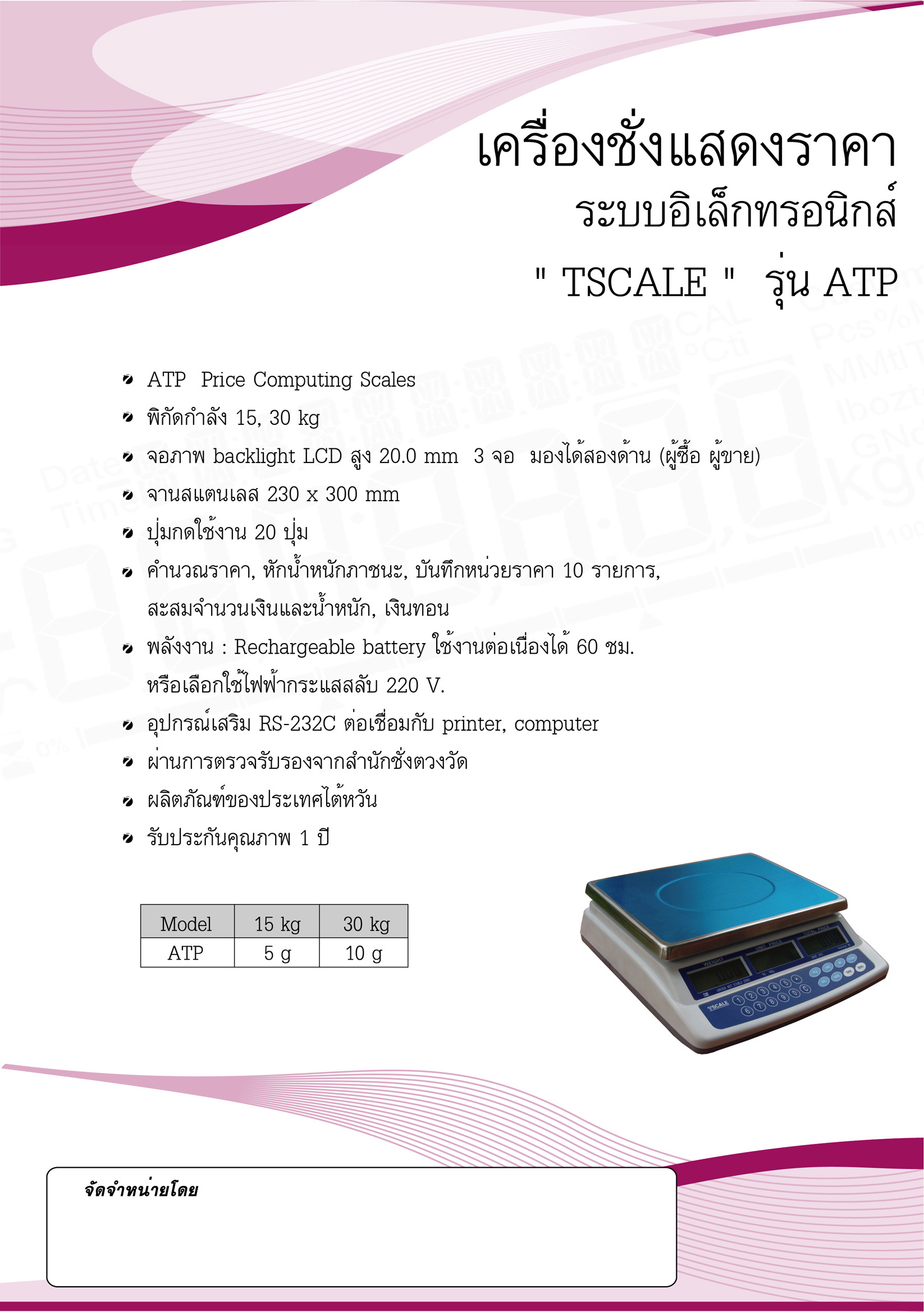 * พิกัดกำลัง 30 kg (1/ 7,500 division)