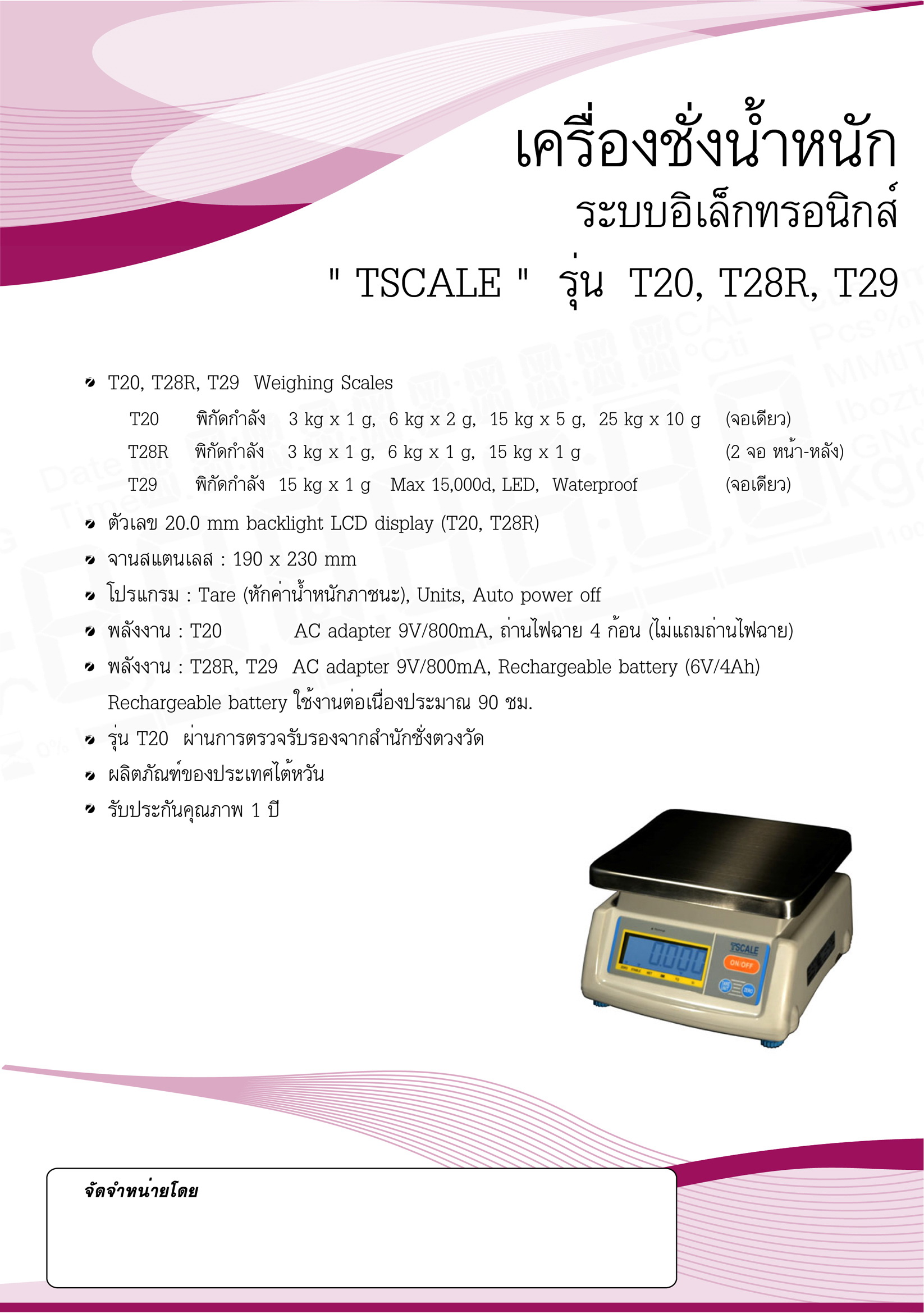 - ผ่านการตรวจรับรองจากสำนักชั่งตวงวัดแล้ว
