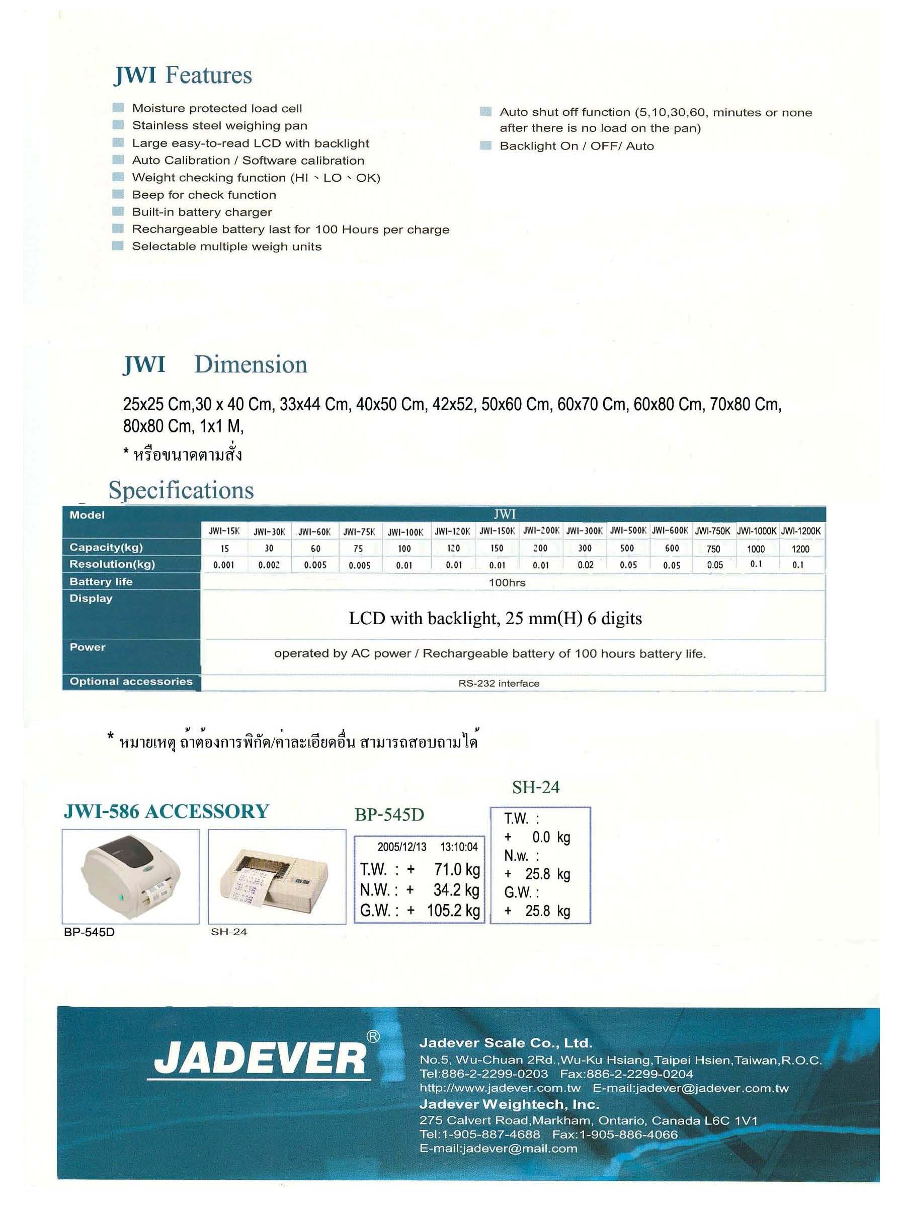 JADEVER Model JWI-586 3040 30kg/2g