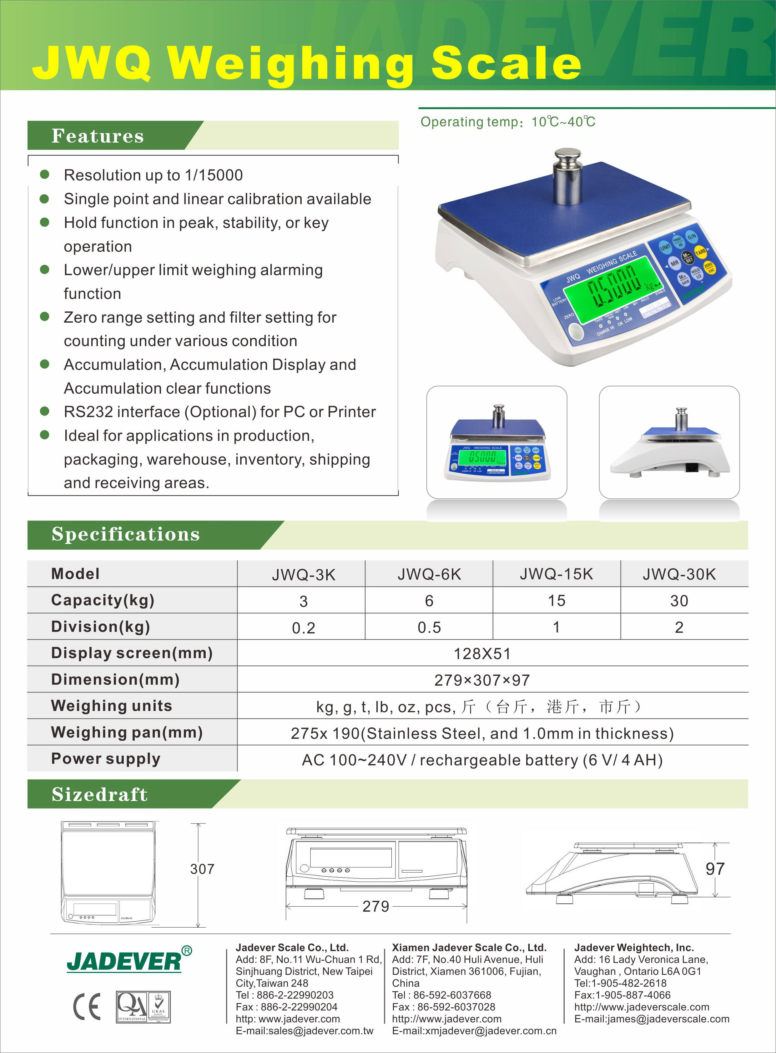 - ชั่งได้สูงสุด 15000 กรัม (15 กิโลกรัม) - ค่าละเอียด 1 กรัม - จานชั่งเป็นสแตนเลส ขนาด 310 x 225 มิลลิเมตร - หน้าจอแสดงผลเป็นตัวเลข LCD สีดำ - Backlight สีเขียว - ชั่งได้ 2 หน่วย คือ kg และ g - สามารถนับจำนวนชิ้นงานได้ (Counting mode) - มีระบบตรวจสอบน้ำหนัก (Comparator Function) - สามารถบวกสะสมน้ำหนักได้ (Accumulation Function) - มีฟังก์ชั่นแสดงน้ำหนักค้างไว้ (Hold Function) - ใช้แบตเตอรี่ ชนิดชาร์จไฟฟ้าได้ (Rechargeable Battery) - ใช้สาย AC - ผลิตภัณฑ์จากประเทศไต้หวัน - รับประกันคุณภาพ 1 ปี |