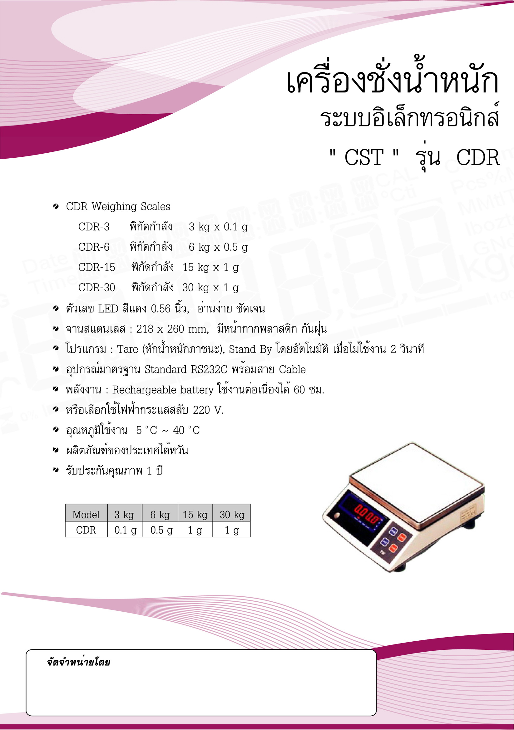 พิกัดน้ำหนัก 3 กิโลกรัม ค่าละเอียด 0.1 กรัม